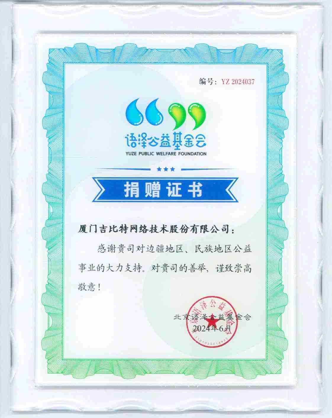 图4::公益活动主办方为公司颁发的捐赠证书